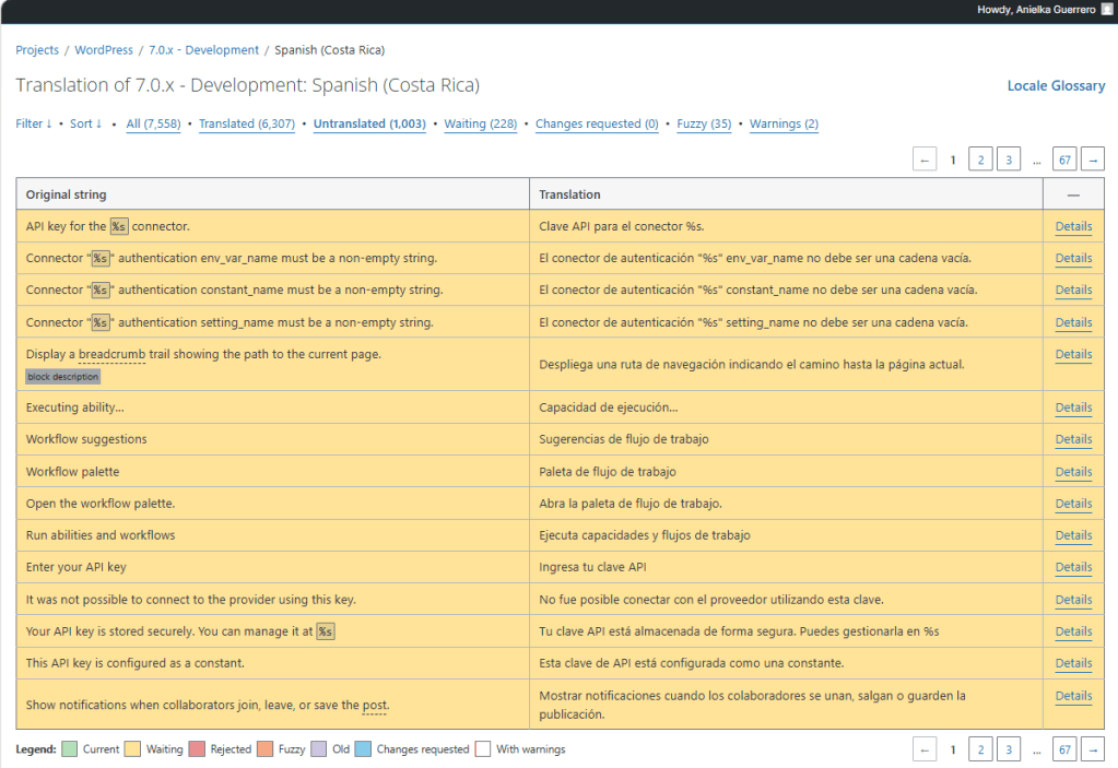 Permit me, then, to present the vulgar evidence of today’s labors: a screenshot of strings translated, and the dreary activity log that no one will ever care to read.